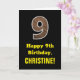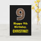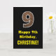 9th Birthday: Name, Faux Wood Grain Pattern "9" Card