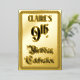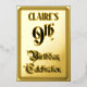 The front of this ornate ninth birthday party foil announcement design features the message “9th Birthday Celebration” in elegant script-style text. It also has an editable name. The back features personalized details about the event, such as the date, time, venue/location, and any other important information. Elegant, luxurious, editable invitations like these might be used to invite guests to a birthday celebration/party being held in celebration of somebody’s 9th birthday. [~Z0000596]