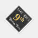 This luxurious and elegant birthday-themed paper napkin design features a custom name and the message “9th Birthday Party”. The large number “9th” has a faux/imitation gold-inspired coloring pattern, the words “Birthday Party” are in fancy script-style text, and the background is colored black by default (although it can be customized). Fancy, ornate paper napkins like this might be useful at a birthday celebration/party being held to honor somebody’s 9th birthday. [~Z0000565]