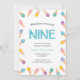 9th Birthday Party | Rainbow Ice cream invitation