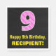 This fun and joyful birthday-themed paper napkin design features a large number "9" having a dark pink and light pink stripes pattern containing heart shapes. It also features the birthday greeting message "Happy 9th Birthday,", and an editable name. Paper napkins like this might be fun to use at somebody’s 9th birthday celebration. [~Z0000436]