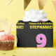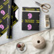 This fun and joyful birthday-themed wrapping paper design features a large number "9" with a striped pattern containing heart shapes colored dark pink and light pink. It also features the birthday greeting message "Happy 9th Birthday,", and a custom recipient name. Birthday themed wrapping paper like this might be a fun way to wrap a gift or present being given to somebody who is celebrating their 9th birthday. [~Z0000435]