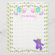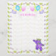 9th birthday party custom scrapbook page featuring a cuddly and cute purple teddy bear princess dressed up in a lovely yellow jeweled crown and pink, blue and green flower accessories and a bunch of balloons with the word PARTY on them with a flower background. It's a fun royal theme for a special princess. This is design 1 of the 2 scrapbook paper designs available for use with matching scrapbook binder available in my store. Original design by Anura Design Studio.
