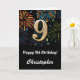 9th Birthday Rainbow Fireworks Black and Gold Card