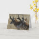 Pronghorn Antelope Young Bucks Head Shot Card. A good close up head shot of two young antelope bucks as they walk threw the tall dry weeds and grasses.