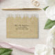 A2 RSVP Return, pre-printed return address, Size Envelope. NOTE: this is a flat printed design, there are no raised lace, fabric or layered elements on this product. COLOR PALETTE: white, tan, burlap DESIGN COLLECTION: This is a modern BOHO or Bohemian Style, gypsy inspired, trendy chic stylish look. It has a simple, clean yet lovely beauty. Created from vintage Victorian or Edwardian era swirl baroque deep drop leaf lace pattern and tear drop design ornaments that have been graphically hand transformed into an elegant beautiful, sophisticated lace trim border. The laces are laid on top of a tea stained burlap textured background pattern. A complete wedding invitation set is available to match. The reverse side has the tear drop, diamond swirl point lace pattern in a full repeat pattern.
