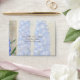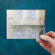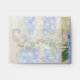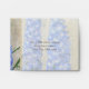 Matching A2, RSVP Response Sized, Preprinted Address Invite Stationery return envelopes for wedding, bridal shower and other formal event invitations. Two sided with preprinted return address. For the nature lover who is planning an outdoor, country, rustic garden style wedding theme or simply loves flowers! DESIGN: The background and border artwork for this elegant, formal yet somewhat rustic wedding invitation invite is hand painted by Audrey Jeanne Roberts. The background is an aged, worn, distressed crackle finish style parchment. Beautiful spires of deep blue delphinium flower spires reach for the sky in various hues of blue from sky to periwinkle. A white Matilija poppy flower (often called "fried egg flowers" or "paper flower poppies") was painted in watercolors, live from Audrey Jeanne's own gardens. A Blue Morpho butterfly hovers over a Damselfly Dragonfly that is resting on the poppy. On the reverse side is the same image without the semi-transparent velum look and border. A complete, matching wedding invitation collection set is available for all your wedding, bridal shower or other special occasion and party needs. COLOR SELECTION: This design features natural tans, browns and beige tones with cream, white, light blue and sky blue.