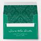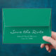 Expectations met; I liked that I had the opportunity to include our address on the back of the envelope. This color matched very well with my save the date. The color was the same as shown above. I had our address labeled on the back of the envelope and the font/printing met my expectations.