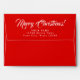 Red A7 Merry Christmas envelopes with handlettered season's greeting on the back flap. Elegant personalized envelopes for Holiday party invites, greeting cards, xmas events, office mailing and more. Pretty brush script handwriting design. Custom handlettering calligraphy typography template. Chic envelopes with printed family surname and return address.