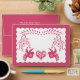 A7 5 x 7 MATCHING wedding invitation envelopes with preprinted return address on the back flap. Inspired by the wonderful Mexican fiesta banners of tissue paper that are hand cut in delightful folk art patterns, this invite set is meant to be mix and match bright colors. Perfect for a backyard, rustic, country western or barn style, spring or summer wedding celebration under the trees. Change the front or back color using the color change picker or we can help if you need it, just message us. Hand drawn design elements include laurel leaf wreath elements, swirl scroll flourishes, cute whimsical dove birds, a heart with flowers and leaves and a scalloped edge. On the reverse side are the bride and groom's initials. Original art and graphic design copyright Audrey Jeanne Roberts. NOTE: There are hidden layers inside of the envelope where you can change the layer positions to mix and match to any color in the fiesta set. COLORS: d65076 bright hot pink begonia fuchsia and white.