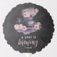 These spooky chic Halloween themed baby shower balloons feature a smoky cauldron adorned with a pumpkin and flowers in a color palette of charcoal, pink, and purple, with "a baby is brewing" beneath. Personalize with your baby shower date.