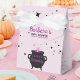 Add a touch of Halloween magic to your baby shower with these enchanting favor boxes! Featuring the silhouette of a beautiful pregnant witch and a magical cauldron, these boxes are perfect for a festive and unique celebration. The cauldron bubbles, with a colorful potion, add a whimsical touch to the black design. Surrounded by stars, these boxes blend the joy of a baby shower with the spooky charm of Halloween. Ideal for those who love a unique and festive touch!