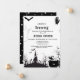 A baby is brewing! With this Halloween-themed baby shower invitation, you may celebrate the parents-to-be in style! This black and white design has a creepy tree in the bottom left corner and a bubbling cauldron in the bottom right corner. "Personalize this template" by changing the text in the template fields. Scroll down to "Click to customize further" to gain access to the more extensive editing tools. You can modify fonts, positioning, color, sizing, and more once you're in Zazzle's design tool!