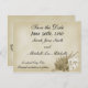 A beautiful tropical themed wedding Save the Date card for any happy couple planning a beach wedding. The back has "Love" written in the sand, with a heart that has an arrow through it below. On the front is an announcement of the bride and groom's names with the wedding date, which can be fully personalized. In the right hand corner is a golden seashell.