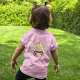 At the center of this enchanting t-shirt is an irresistibly cute bumblebee character. With its round body and endearing expression, this bee exudes warmth and charm. Its faded ivory wings add a touch of softness to the design, giving the bee an ethereal and dreamlike quality. Perched atop its head is a regal gold crown, adorned with cranberry-colored accents that add a pop of rich color and whimsy. Surrounding the bumblebee are delicate pink and grey flowers, each petal lovingly detailed to create a sense of depth and texture. These flowers provide a soft and soothing backdrop for the bee, enhancing the overall aesthetic of the design. The gentle color palette of pink and grey adds a sense of tranquility and sweetness, making this shirt both stylish and adorable. Cute bumble bee with a gold crown and surrounded by flowers makes an excellent gift or a great birthday shirt for your toddler.