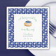 This is a customizable baby shower napkin with a charming blueberry theme. The design features a blue border adorned with white daisy-like flowers, framing a central white square. Inside the square, there is an illustration of a blueberry dessert with green leaves, adding a playful and sweet touch. The text, written in a mix of cursive and print fonts, reads: "A berry sweet boy is on the way!" Below, in a complementary font, it displays the honoree’s name and the event date. The napkin has a fresh, whimsical, and fun aesthetic, perfect for a blueberry or fruit-themed baby shower. It is customizable, allowing for the name and date to be personalized to fit any celebration.