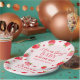 I ordered personalized baby shower plates and I loved them and they were delivered on time they were personalized with thanks for showering our little peanut. The printing turned out good but edge of plates had like tears around the edges I would recommend them to any one having a baby shower or party