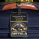 A Bison Farmer Stands Proudly in Golden Fields Luggage Tag