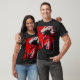 My 11 yo wore adult XL (5’7” 165#). The 8yo is small framed. She wore adult small and tied it in the back. Grandma wore adult large with long sleeve shirt underneath. Tall girl adult medium. Dark haired male adult large. Good quality dark Heather gray, Gildan brand shirt. -it was next up from basic choice and cost about $20 per shirt. Not too thick or thin. Washed and dried well, no major shrinkage. Not see-through. Can wear a bra under it fine. Screen print is just as shown and well done, front and back.