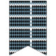 This Design showcases a repeating pattern featuring a geometric design. It consists of rows of rhombus-shaped motifs, alternating in black and white, with zigzagging lines cutting through the center of each rhombus. The pattern creates a visually striking and dynamic effect due to its alternating colors and the repetition of geometric shapes.