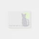 Black Cat And The Moon From The Desk Of Personalized sticky notes. My original black Zen Cat looking at the yellow and lime green moon art design in my dots and dashes style on personalized sticky notes.