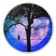Fantastic full moon of purple hues and cobalt blue skies with a black cat on wire looking at it