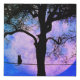 Fantastic full moon of purple hues and cobalt blue skies with a black cat on wire looking at it