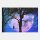 Fantastic full moon of purple hues and cobalt blue skies with a black cat on wire looking at it
