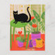 A Black Cat With Houseplants Postcard