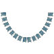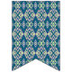 The design you provided features a repetitive geometric pattern. It consists of diamond and teardrop shapes arranged in a tessellated manner. The primary colors used are blue, green, and white. Each diamond shape is outlined in blue, enclosing a smaller green diamond, which in turn encloses a white teardrop shape. The overall design creates a sense of depth and complexity. It could serve as inspiration for patterns or decorative elements.