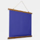 A blue background featuring a prominent white squa hanging tapestry