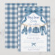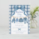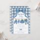 Cool, casual, and full of charm, this blue jean baby shower invitation features a sweet denim clothesline hung with tiny boy clothes, shoes, and denim accessories on a classic blue gingham background. Perfect for a "Blue Jean Baby Is On The Way" theme, denim baby shower, or boy clothesline baby shower, this invitation brings a laid-back, effortlessly cool vibe to any baby celebration.