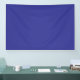 a blue wall with a clock banner
