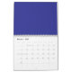 a blue wall with a clock calendar