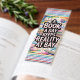 Dive into delightful defiance of reality with this charming bookmark! Featuring the witty quote “A book a day keeps reality at bay” in playful hand-lettering, this design is a celebration of every book lover’s favorite pastime—getting blissfully lost in a story. Surrounded by dreamy floating books, twinkling stars, and soft clouds, it’s a visual escape before you even open your novel. This bookmark is perfect for adding a touch of humor and magic to your reading routine. Ideal for personal use, gifts for fellow bibliophiles, or as a book club keepsake. Because why face reality when there are so many good books waiting? Order yours today and keep the real world at arm’s length—one page at a time.