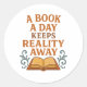 Escape into your next great read with this charming “A Book a Day Keeps Reality Away” design. Ideal for book lovers, librarians, students, and anyone who prefers fiction over real life. Whether you're carrying your latest haul in a tote, sipping tea while reading, or decorating your reading nook, this design adds a literary touch of humor and warmth. A thoughtful gift for readers of all genres!