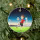 A boy playing soccer alone ceramic ornament