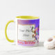 A Birthday photo mug with a bunch of colorful balloons flying up into the sky frame, plus the customizable text "Happy Birthday" on the front and back. Add a photo to the front and a different photo to the back, or have both the same.