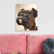 A Brindle Boxer puppy looking up curiously. Canvas Print