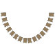 The Design features a pattern of multiple horizontal lines with intricate designs. Each line displays a repeating pattern, including braided or twisted rope designs and more ornate loops and swirls. The color palette consists of various brown tones, creating the appearance of natural fibers. This detailed pattern could be used in design contexts such as textiles, wallpapers, or other decorative surfaces.
