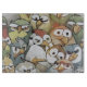 This glass square cutting board is fun there are a bunch of grumpy cartoon birds created in watercolors.