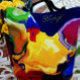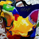 The colors on this tote bag makes me smile. This is a printed image of an acrylic painting with burst of yellow, fushia, green and blue colors.