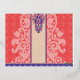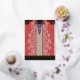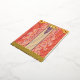 • Background: A rich red color with an elaborate and dense pattern, adding texture and depth.