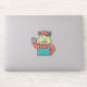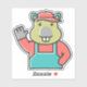 A Cartoon Funny Red Beaver Waves Left Hand. Sticker