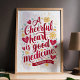 Brighten up your space with this uplifting "A Cheerful Heart is Good Medicine" wall art inspired by Proverbs 17:22. Featuring vibrant red script surrounded by cheerful suns, hearts, and floral accents, this piece brings joy and positivity to any room. Perfect for those who want to infuse their home with faith-based inspiration or give a thoughtful and encouraging gift.