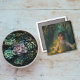 Step into a world of quiet wonder. This magnet captures a child surrounded by glowing butterflies beneath tall trees, bathed in warm orange light. A small piece of magic to brighten any space. It is soft, dreamy, and filled with the calm of a fairytale forest.