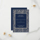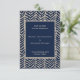 A classic herringbone background in navy and taupe present the basis for this traditional yet modern and elegant wedding Save the Date. A navy blue insert contains the pertinent customizable wedding information.