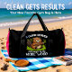 This humorous black and pink duffle bag features a cute, smiling beaver sitting in grass and holding a log, with the witty phrase "A CLEAN BEAVER Always Gets MORE WOOD." It's a playful and cheeky design for those who enjoy double entendre and a good laugh. Perfect for anyone with a bold sense of humor or a fondness for beavers. Edit color of the bag caps and body in the Design tool to your favored colors.