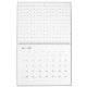 A clean white backdrop featuring tiny dots scatter calendar