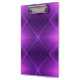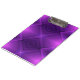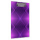 "A clipboard with a metallic clip against a vibrant purple background featuring geometric diamond patterns, creating a modern and stylish look."